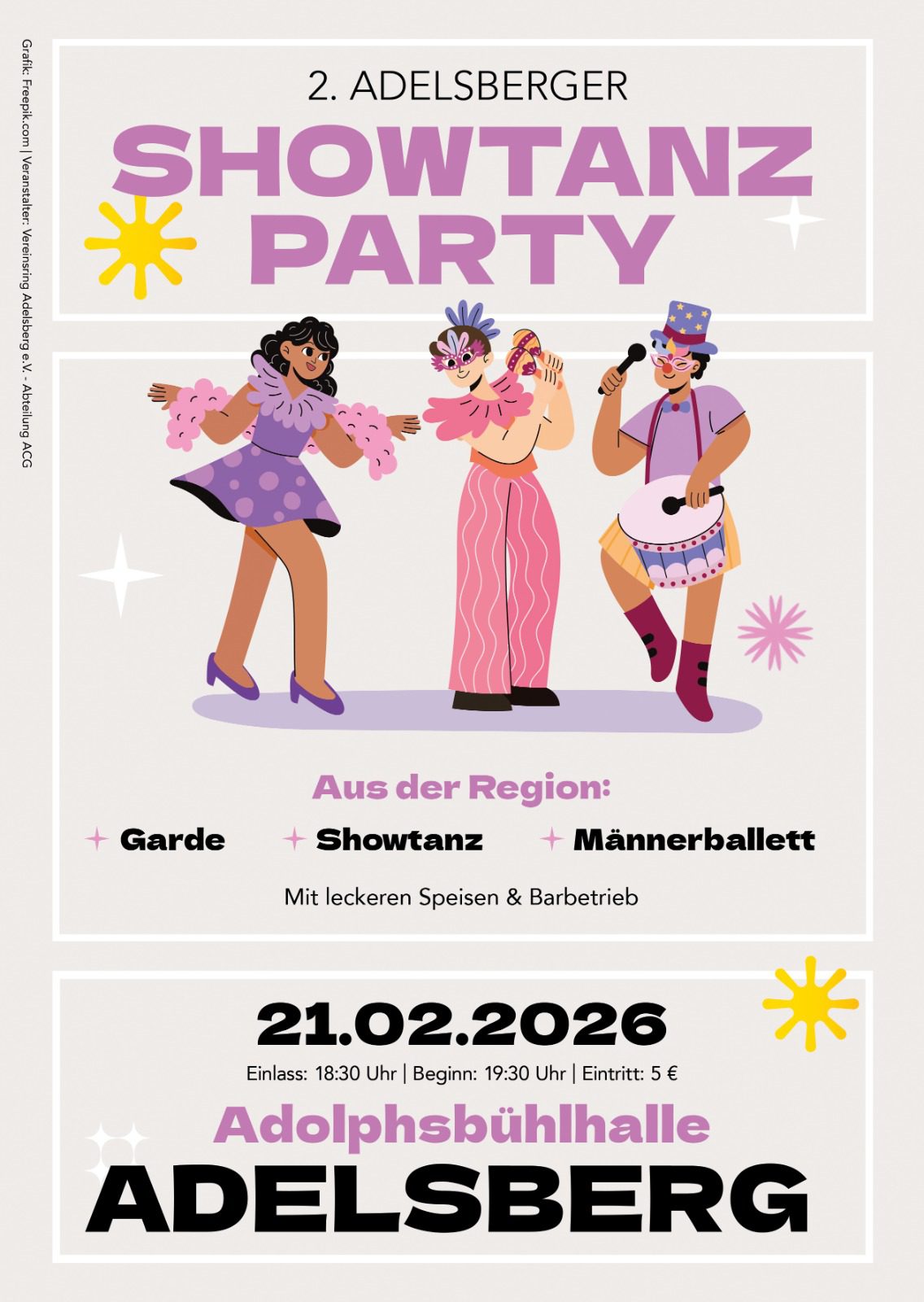 Die Adelsberger Carnevals Gesellschaft lädt ein zur 2. Adelsberger Showtanzparty Regionale Garden, Showtanzgruppen und Männerballette geben noch einmal ihr Bestes und zeigen, wofür sie monatelang geübt haben. Feiert mit uns das Ende der Faschingssaison und lasst euch von der Stimmung der Auftritte anstecken. Deine Tanzgruppe will mitmachen? Dann schicke uns eine E-Mail an acg.showtanzparty@gmail.com Neben […]